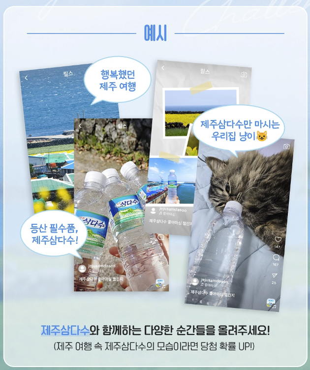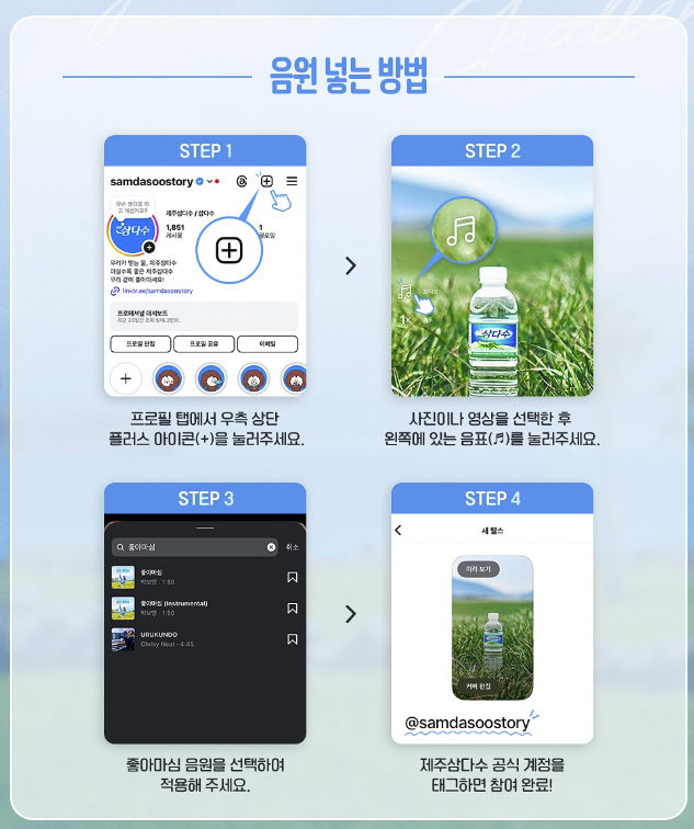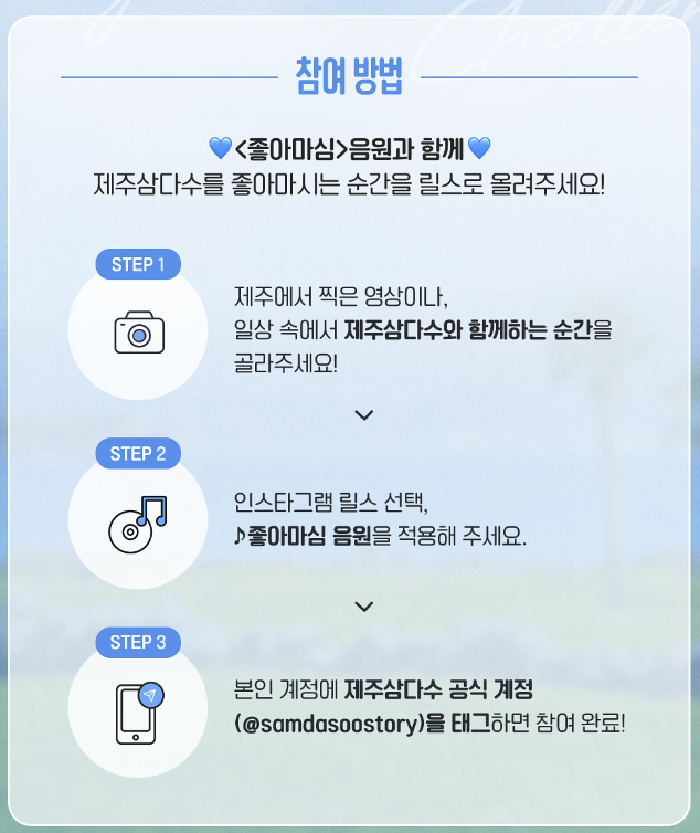 본인 계정에 제주삼다수 공식 계정(@samdasoostory)을 태그하면 참여 완료!