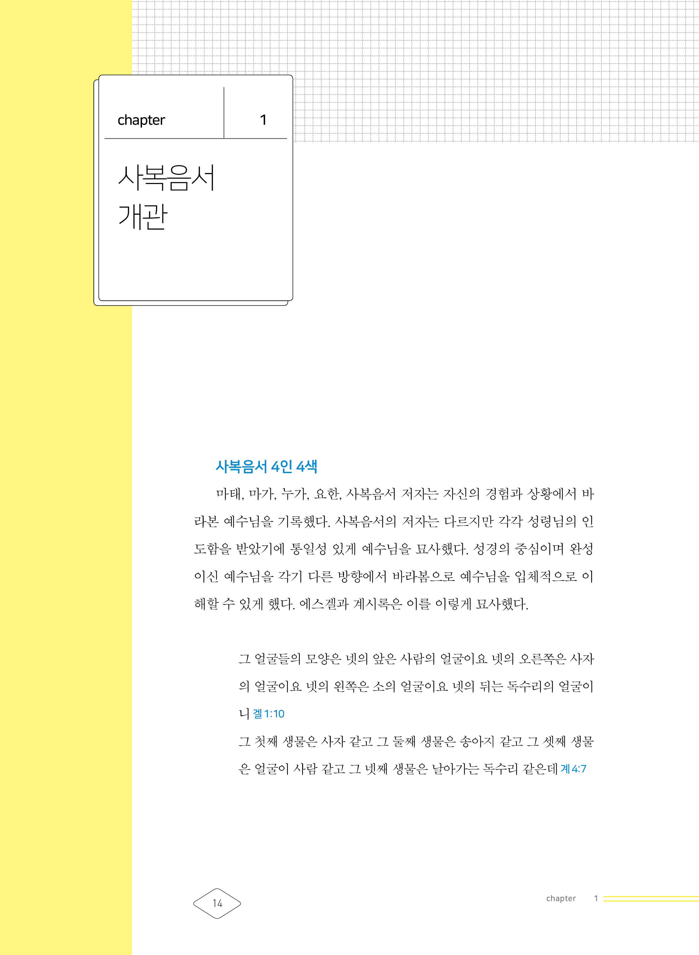 이 책은 지리와 성경을 직접 연결하는 책이다. 먼저 성경을 펴고 해당하는 말씀을 읽는다. 그후 이 책의 표를 보고 성경과 지도에 형광펜으로 해당 지역을 칠한다. 그 다음엔 지도에 성경 구절과 핵심 키워드를 쓰면 뇌리에 박혀 성경이 입체적으로 읽힌다. 그 후 완성된 지도를 보고 사복음서끼리, 그리고 1-5차 전도여행끼리 비교해 보면 각 성경의 공통점과 차이점을 뚜렷이 발견할 수 있다. 이 방식대로 하다 보면 통독할 때는 발견하지 못한 보석들을 캘 수 있다. 이 책은 수요예배나 그룹별 성경공부 때 활용하기 좋다. <부록-지도>에는 2번씩 그려볼 수 있도록 종이 지도를 2장 배치했으며, OHP 필름은 2장 넣어 종이에 대고 그렸다 지웠다 할 수 있도록 했다.