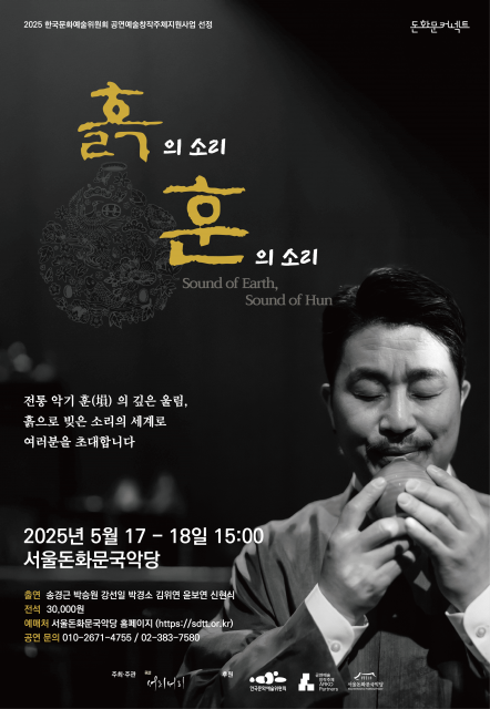서울돈화문국악당은 오는 5월 17일(토)과 18일(일), 전통 도자관악기 ‘훈’의 소리를 현대적으로 조명하는 공동기획 공연 ‘흙의 소리, 훈의 소리’를 선보인다. 이번 공연은 국악당의 공동기획 프로그램 ‘돈화문 커넥트’의 2025년 첫 번째 시리즈로, 서울돈화문국악당과 예술단체 공간서리서리가 협력해 전통과 현대의 경계를 넘나드는 무대를 마련했다.
