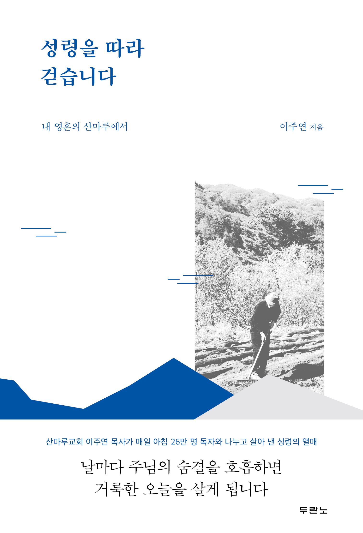 존경받는 목회자이자 영성훈련가 산마루교회 이주연 목사의 신간이다. 저자가 지난 20년간 많은 그리스도인과 나눠 온 산마루서신은 복잡한 마음을 다듬고 하나님께 시선을 두며 하루를 열 수 있도록 안내해 왔다. 《성령을 따라 걷습니다》는 산마루서신 중에서도 성령의 9가지 열매인 ‘사랑, 희락, 화평, 오래 참음, 자비, 양성, 충성, 온유, 절제’를 주제로 쓴 글들을 엄선했다. 9가지 열매별로 산마루서신의 단상들을 묶고, 각 장마다 산마루 이야기를 넣어 저자의 사역도 한눈에 볼 수 있도록 했다. 저자의 글은 독자와 나누고 삶의 현장에서 살아낸 정직한 기록이기도 하다. 본문 곳곳에 사진을 배치하여 더욱 생생하고 현장감 있게 묵상하도록 구성했다.