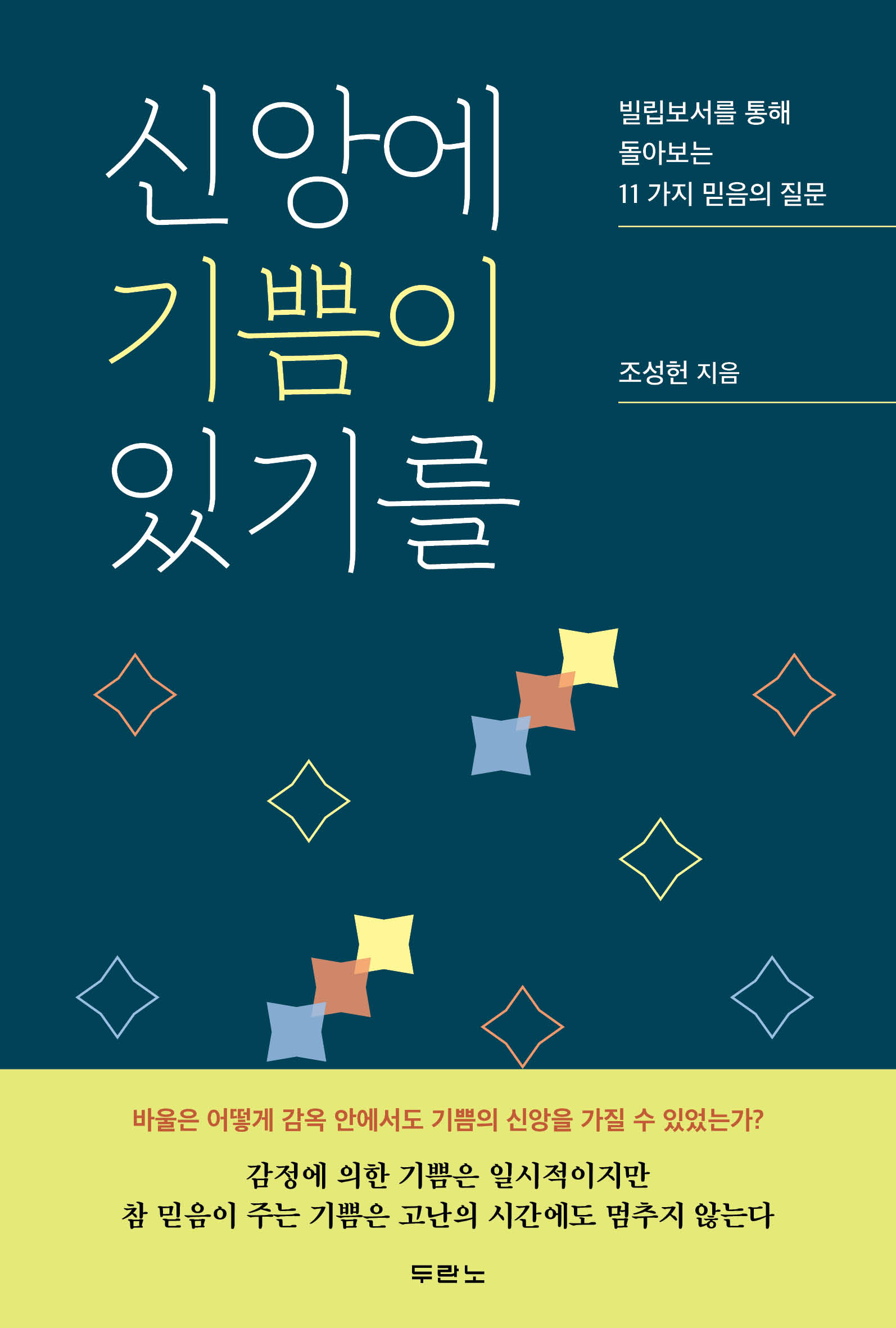 7월 12일 조성헌 목사님의 신간이 나왔습니다. 바로 "신앙에 기쁨이 있기를" 이란 책입니다. 부제목으로는 빌립보서를 통해 돌아보는 11가지 믿음의 질문이네요