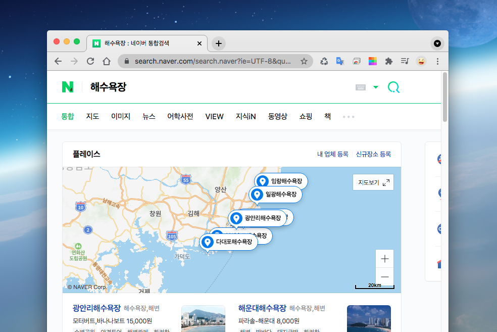 네이버로 이동하면서 검색결과를 보여줍니다.