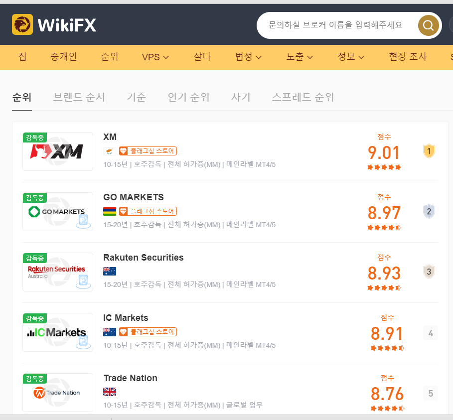 wikifx.com 기준으로 보면 순위기 무료 9.01점을 받고 있는 당당히 1등을 차지하고 있는 회사이다. 트레이딩뷰는 멈춰도 MT5가 멈춘 적은 없다. 그만큼 안정적인 회사라는 것이다. 국내 대여업체를 한번이라도 이용해 본 사람이라면 알것이다. 브로커 회사가 얼마나 안정적이여야 하는지가 거래만큼 중요하다는 것을 말이다.