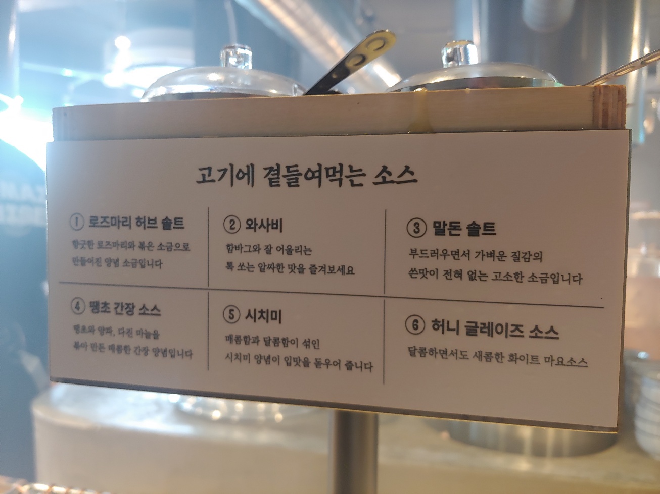 간단하죠~ 이곳은 메뉴가 단일 메뉴이기 때문에 고민없이 맛있게 먹으면 된다. 함바그를 먹을 때는 처음에는 함바그의 맛을 그대로 보길 추천한다. 2번째 것 부터는 소스를 곁들여 먹는 것을 추천한다. 물론 육즙이 가득해서 와사비와 먹으면 깔끔한 맛을 느낄 수 있지만 "허니 글에이즈 소스"와 먹는 것도 고소한 맛을 느낄 수 있으니 하나하나 먹어보시길 바랍니다.