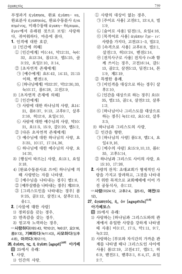 헬라어 단어 출연 빈도수 표기가 되어 있습니다.