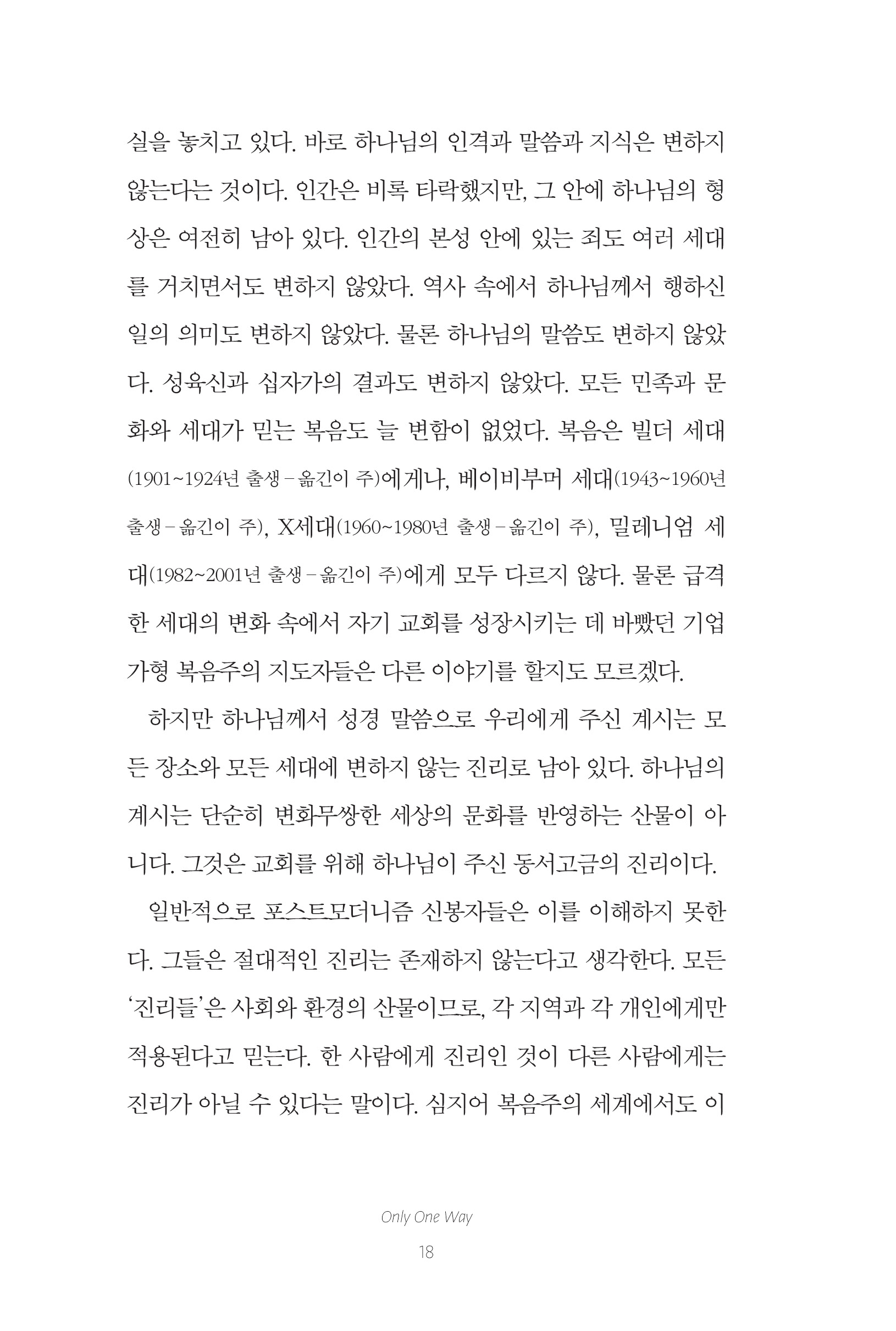 그러나 복음을 담대히 전하는 것이야말로 이 시대에 꼭 필요한 일이다. 여기 일곱 명의 유명한 신학자들이 포스트모더니즘의 한계를 밝히고, 우리가 자신감을 가져야 할 이유를 알려준다. 이들이 말하는 ‘유일한 진리’, ‘복음’을 가지고 당당히 일어설 준비가 됐는가?